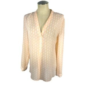 Banana Republic Sheer Blouse Peach with White Geometric Diamond Pattern Size L