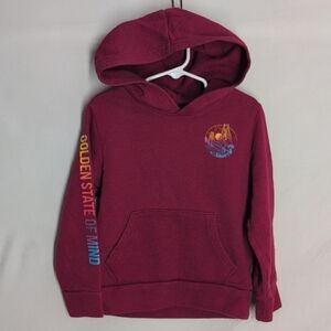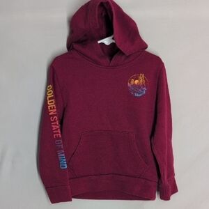 Old Navy Maroon Hoodie with Multicolor Sleeve Design