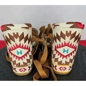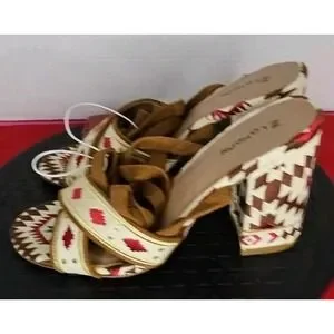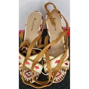 Z London Veloce Ankle Lace Up Sandal Aztec Tribal Black Size 8.5 NWT'S