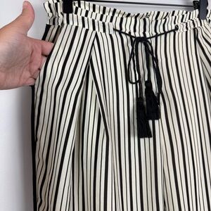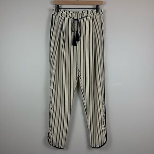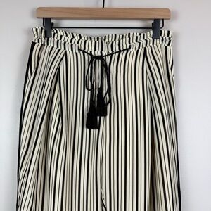Greylin Anthropologie Pants Women Medium Ivory Black Striped Tassel Tie Straight