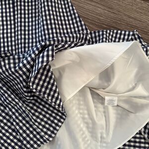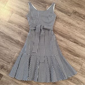J. Crew Navy Whitw Gingham Belted Midi Dress
