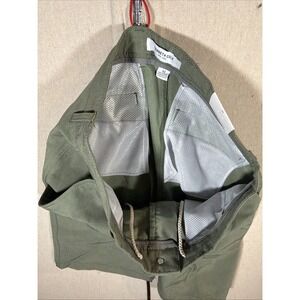 The Kenneth Cole Tech Shorts in size 32 are a stylish and practical choice for men looking for lightweight and breathable shorts. Made from a blend of polyester and spandex, these shorts feature a mid-rise fit with a slim cut and a flat front design. The 9" inseam and zip closure make them perfect for various occasions such as travel, casual outings, or even business meetings. With moisture-wicking capabilities and easy-care fabric, these shorts are ideal for the summer, fall, and spring seasons. The green color and solid pattern give them a modern and versatile look.