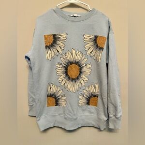 O'Neill Light Blue Sweater with Sunflower Design Small