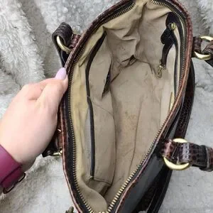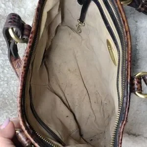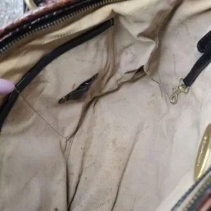Well Loved Brahmin Purse in need of some TLC. Please see all pictures as they are part of the description. Bag is Structurally Sound but shows signs of leather wear and dirty interior.