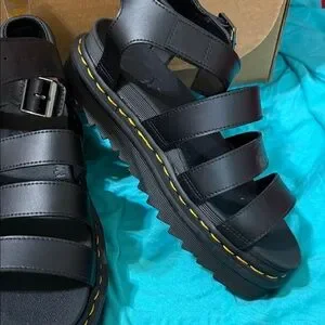 Dr. Martens Black Strappy Sandals with Yellow Accents