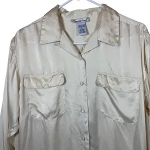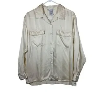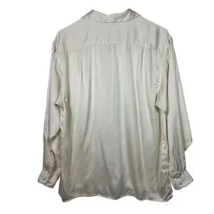 Anna and Frank 100% Silk Cream Button Up Blouse Top Shirt Women's M Flap Pocket