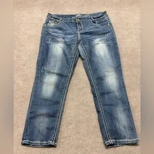 Almost Famous Women’s Jeans Size 13 Distressed Medium Wash Straight Leg
