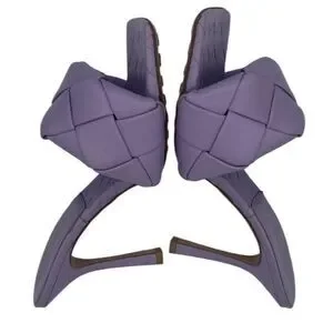 New Bottega Veneta Lido Heeled Leather Square Toe Sandals EU 39/ US 9 Lavender