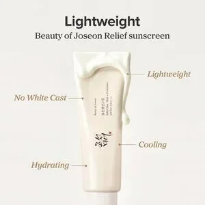 Gentle yet powerful organic Beauty of Joseon sunscreen offers effective UV blocking with broad spectrum SPF50+ PA++++.
