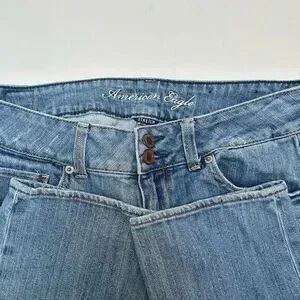 American Eagle Stretch Artist Crop Light Wash Distressed Jeans size 8
