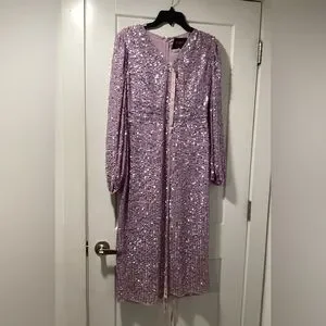 NWT Mac Duggal Size 8 Linear Sequin Long Sleeve Evening Dress