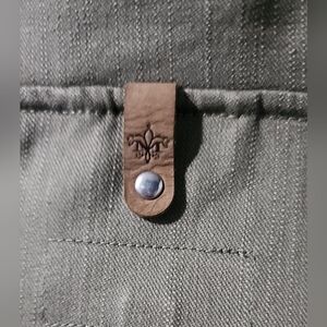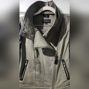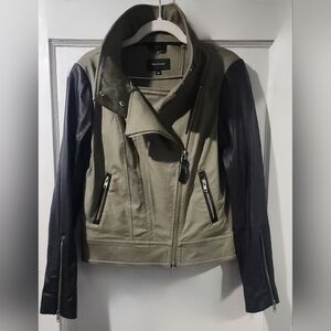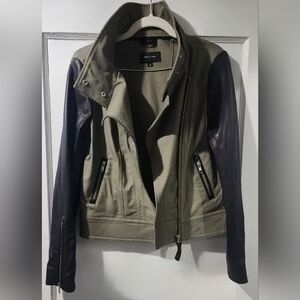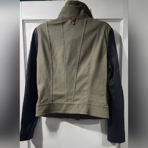 🌷Makage Chic leather motojacket with olive body and black leather sleeves. Perfect for an edgy style.