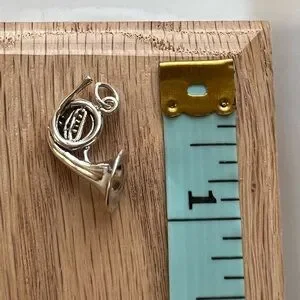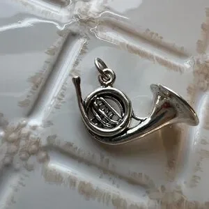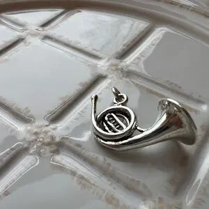 French Horn Vintage Charm NOS Silver Tone Music Pendant