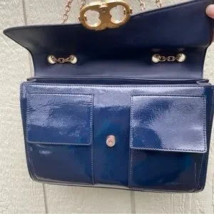 Tory Burch handbags Cross Body or Shoulder bags Gemini Link Patent Leather Golden Chain Logo , size 12x8x4”