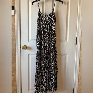 Black Daisy Maxi Dress 100% Viscose PTP 17” Size Small