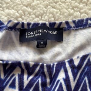 Stylish Blue and White Geometric Jones New York Women's 3/4 Sleeve Top