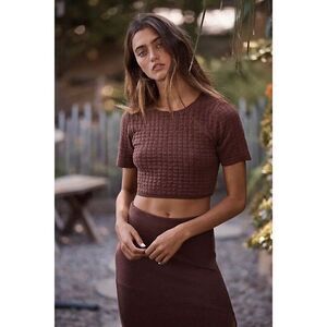 NWT FREE PEOPLE Sz L VIVIENNE SKIRT SET 2 PC CROP TOP & MIDI SKIRT IN BROWN
