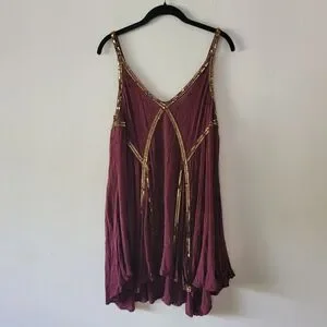 Free People Intimately In Heaven Embelished Slip Dress Small
