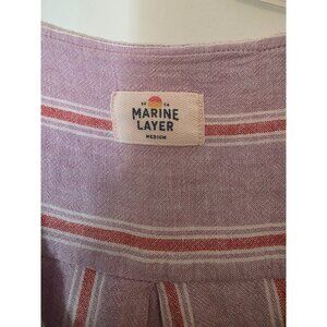 Marine Layer Pink Striped Linen Blend Sleeveless Shirt Dress M Pockets