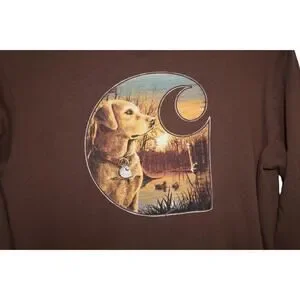 Carhartt Youth Brown Long Sleeve Pocket Tee – Dog Duck Hunt Graphic Back Size M