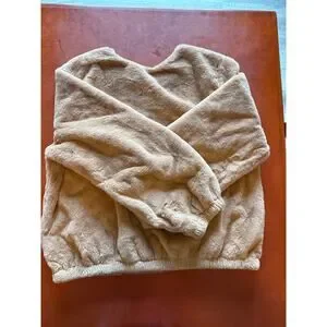 Philosophy Faux Fur Pullover Sweatshirt Tan Beige Size L NWOT Cozy Soft