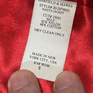 Garfield & Marks red Floral Blazer Open Front Jacket pockets Size 8 Made In USA