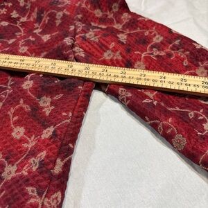 This elegant red floral jacket is perfect for adding a touch of sophistication to any outfit. Its vibrant color and intricate design make it a standout piece in any wardrobe.