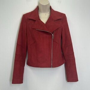 Express - Red Faux Vegan Suede Moto Long Sleeve Lined Zipper Jacket Size XS
