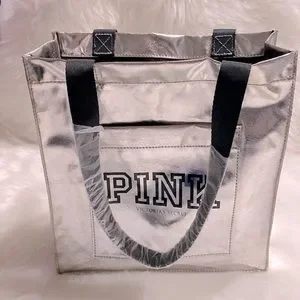 Victoria’s Secret Metallic Silver Shopping Bag NWT Excellent Condition