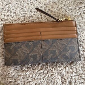 Elegant wallet with signature MK pattern. Features gold-tone logo charm.