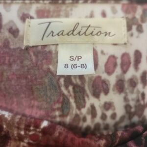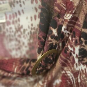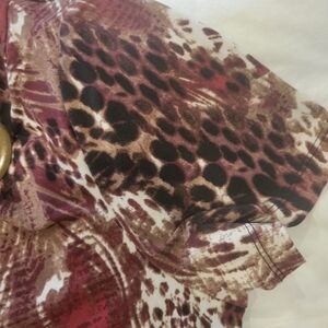 Trendy print blouse with drop neckline in Leopard Print plus reds and whites length is 25: pit to pit 18"