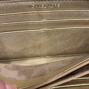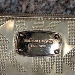 Michael Kors engraved metal logo plate on the front.