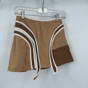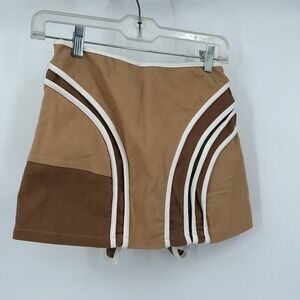 Womens Y2K Mini Skirt Size S Brown Preppy Tennis Side Stripe Cyber Futuristic