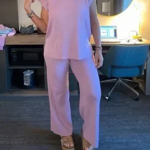 Comfortable lilac ribbed knit lounge set. Short-sleeve top with matching pants. Like new, worn once