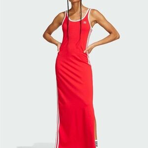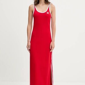 Vibrant red dress with signature white side stripes. Ideal for sporty style. brand new tags attached, size medium.