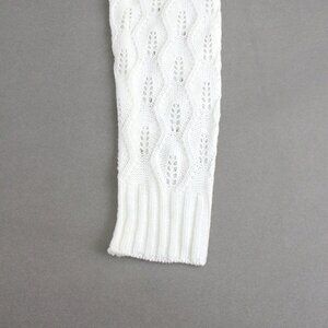 White Casual Women's Tie-Front Hollow-Out Long Sleeve Geometric Knit Cardigan