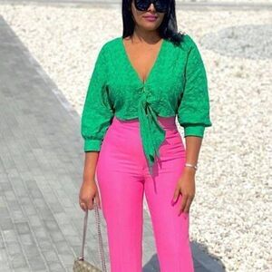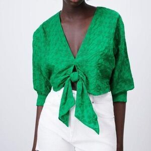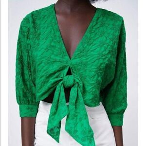 Zara Knotted Embroidery Green Top Small