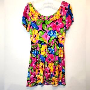 Vintage 90s Arrested By Jonathan Martin Dress Bright Floral Babydoll Tropical 14