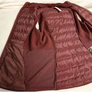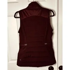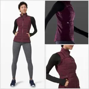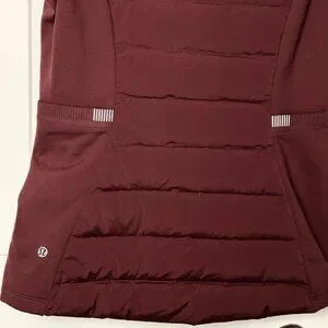 lululemon, down for it all, lululemon vest, goose down vest, running vest, insulated vest, burgundy vest, wine color jacket, athletic outerwear, fall layering, lightweight puffer vest, hybrid jacket, womens activewear, size 8 lululemon, gym to street, athleisure outfit