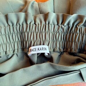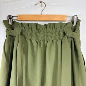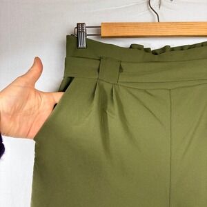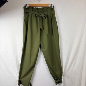 Paper Bag Pants Sz Large Olive Green Bow Tie Pull On High Waist Tapered Ankle