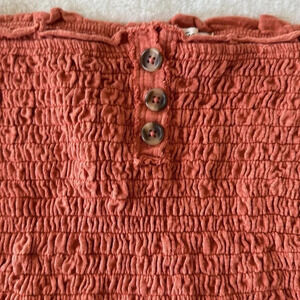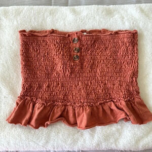 Free People Babe Rust Orange Smocked Tube Top with Button Detail size small