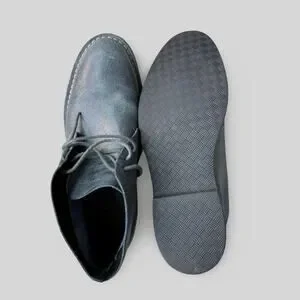 Men's Cole Haan Glenn Chukka Boots. They are blue leather with laces. Size 10. They are in excellent condition apart from some fraying on one shoelace (see last photo).