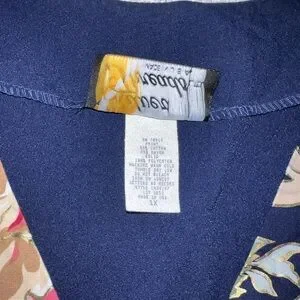 Vintage Silver Threads 1X Floral Vest Navy Made in USA Cottagecore