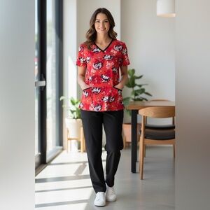 Adorable Disney Minnie & Mickey Valentine scrub top in size Large.