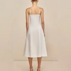 Chic white midi dress by Cult Gaia. Features elegant gold strap details. Perfect for stylish occasions.