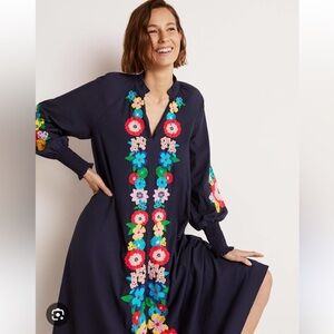 🌼 Boden Embroidered Floral Navy Maxi Belted Dress w/ pockets
