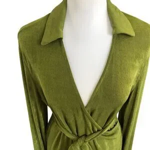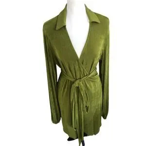 Princess Polly Sexy Flowy Feminine Green Wrap Size 4 Long Sleeve Mini Dress