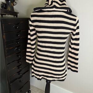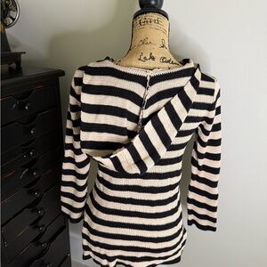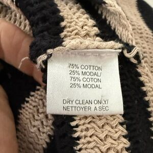 Chic knit top with bold black and cream stripes. Ideal for everyday style.