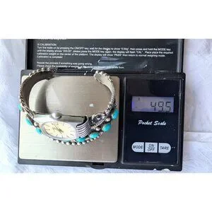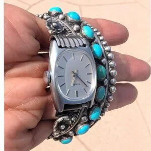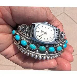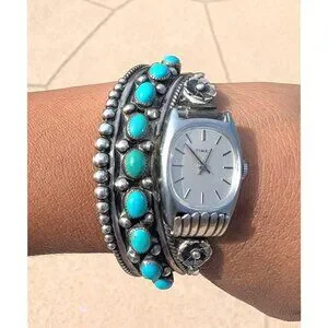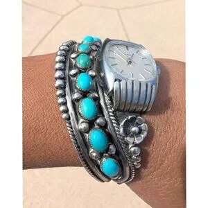 Navajo Sterling Silver & Turquoise Watch Bracelet E. Anderson Non Working 49.5g