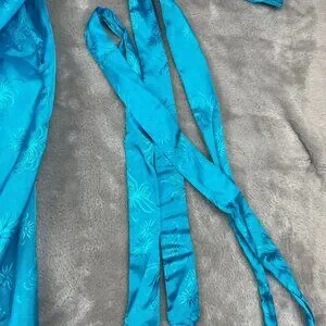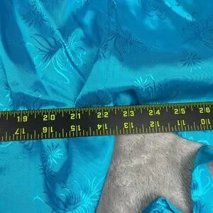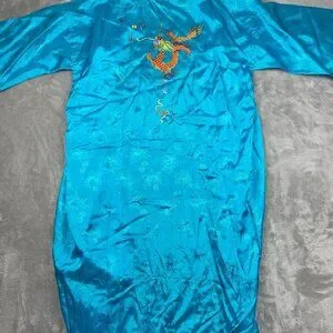 Vintage Golden Bee Teal Blue Chinese Kimono Robe Dress Women's Large
